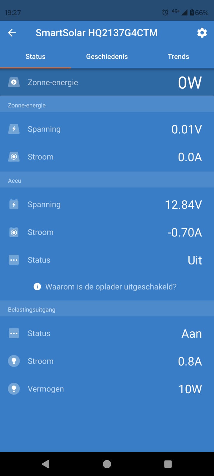 Met een Imp van 10.30A heb ik niet voor de MPPT 75/10 maar voor de MPPT 75/15 gekozen: de bottleneck met opladen is dan het paneel. En wellicht wil ik er later nog een extra paneel(tje) op aansluiten?
